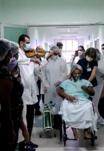 Ao som de Hallelujah, de John Cale, executada por um violino e um coral de vozes de integrantes da equipe de enfermagem, dois pacientes deixaram a UTI Respiratória após 9 e 5 dias respectivamente de internações em tratamento intensivo.