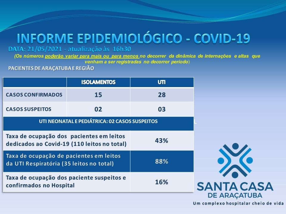 21/05/2021 17:44:32 - Boletim Epidemiológico da Santa Casa de Araçatuba