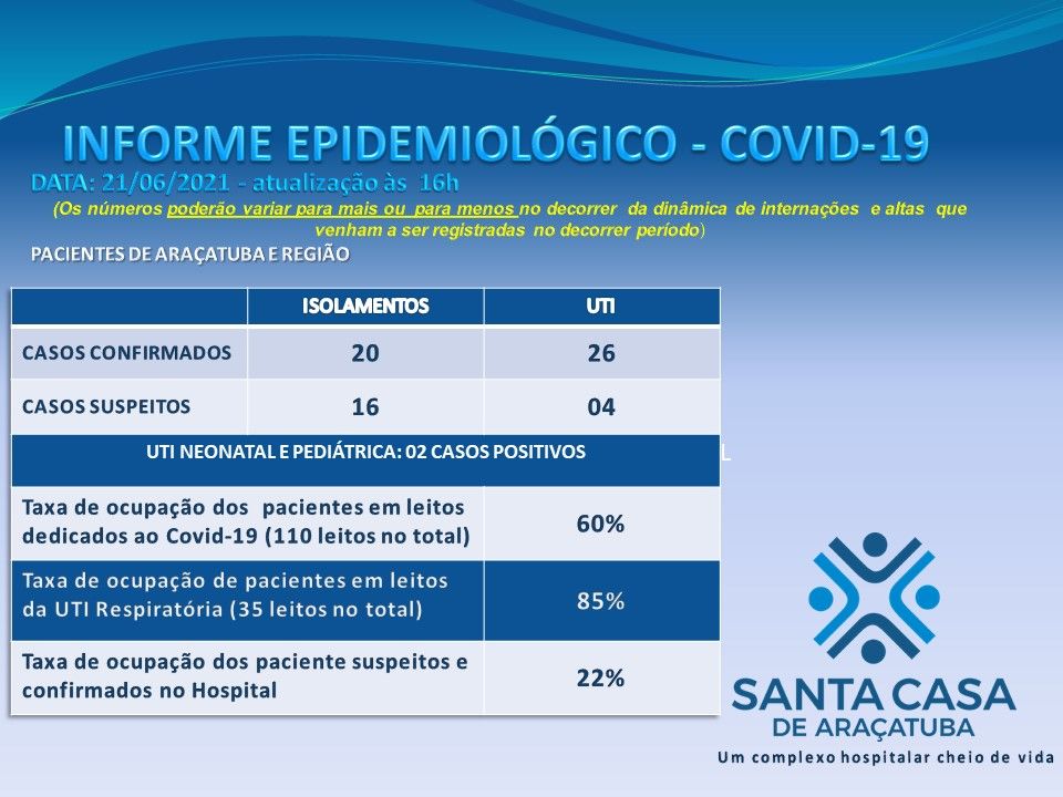 21/06/2021 16:22:02 - Boletim Epidemiológico da Santa Casa de Araçatuba