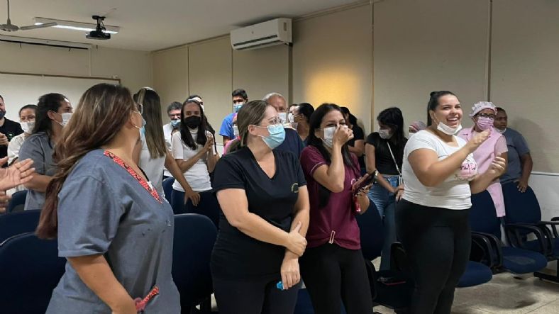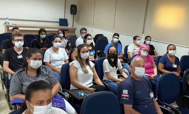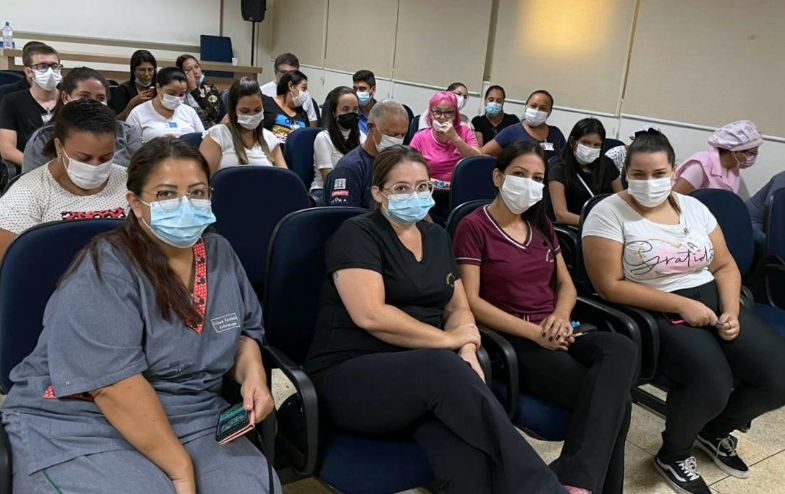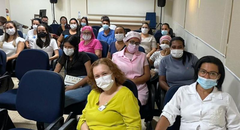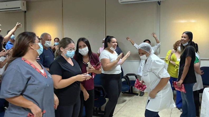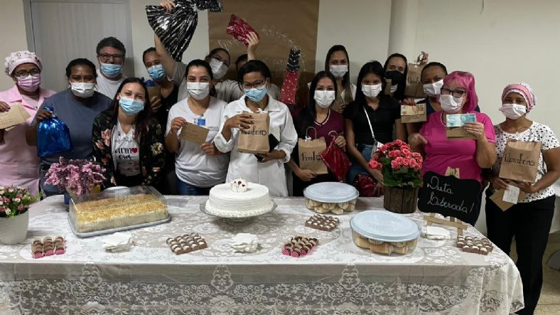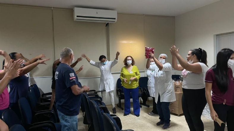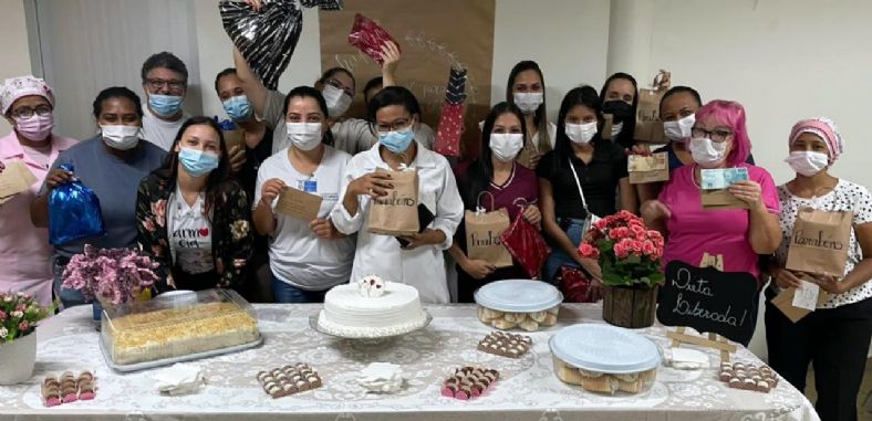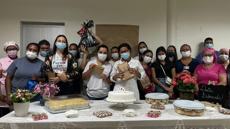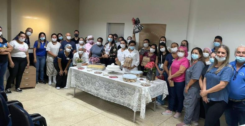 A confraternização foi organizada pela supervisora de Humanização Regina Gomes teve o tradicional bolo de aniversário, lanches e preparados pela equipe da Central de Nutrição de Dietética.