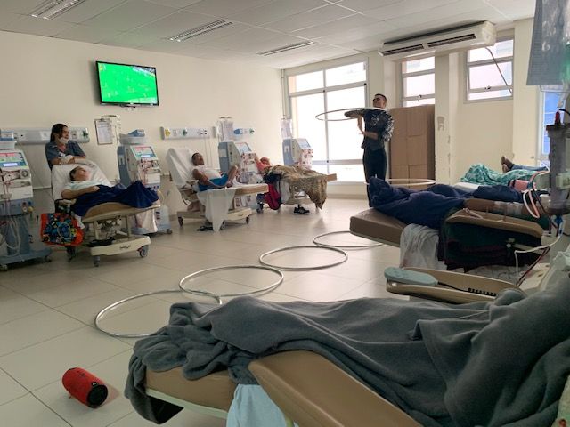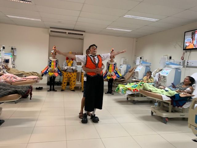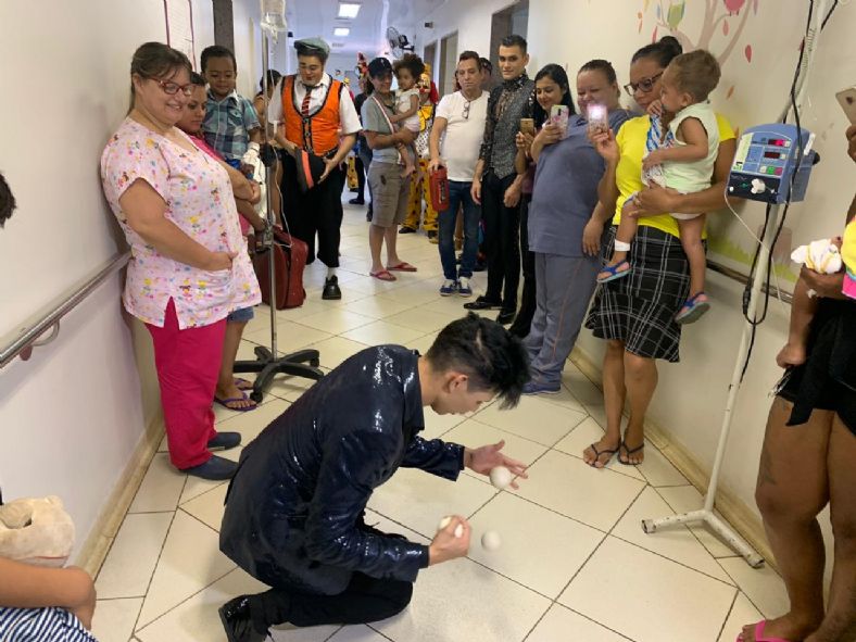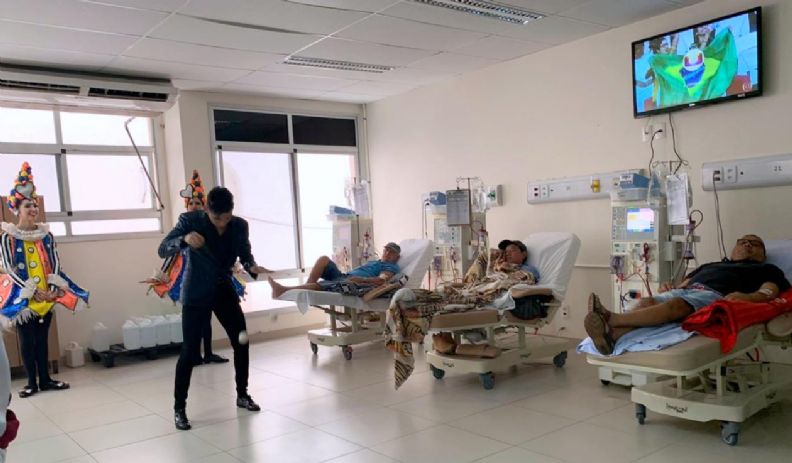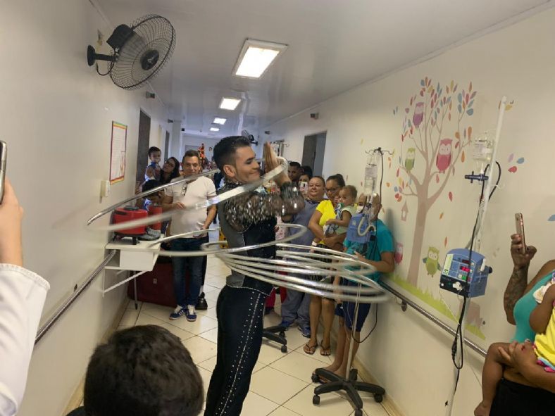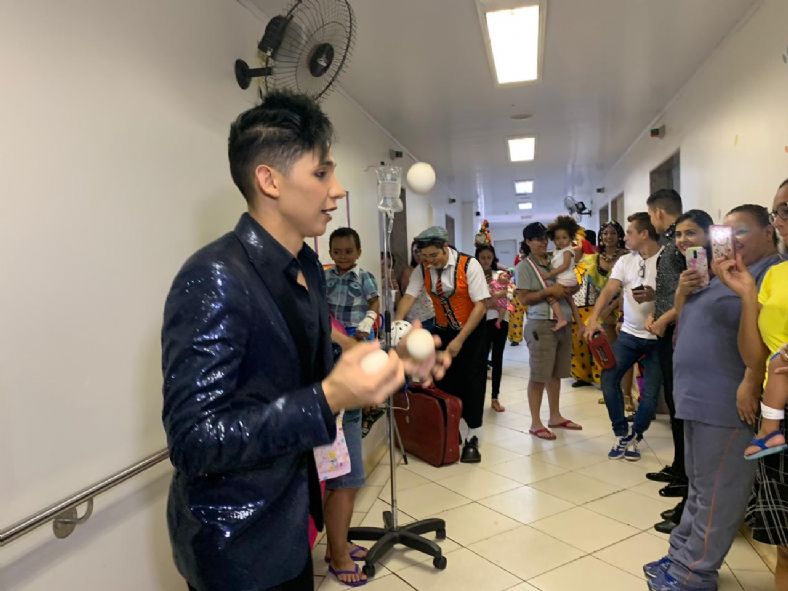 A pediatria, a ala de internação de adultos em tratamento de câncer, o ambulatório de especialidades médicas, o hospital do rim, o serviço de radioterapia e o centro de tratamento oncológico da Santa Casa de Araçatuba foram transformados em picadeiros para os palhaços, malabaristas, bailarinas e acróbatas do Circo Tihany, que está em sua última semana em Araçatuba.