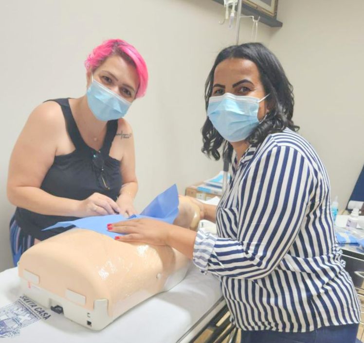 Os participantes também tiveram monitoria prática, ministradas pelas enfermeiras Elisângela Pagliuzo, Luana Aparecida Procópio, Taísa Santos de Melo Andrade e Patrícia Russo, que atuam no CTO, que ensinaram práticas da aplicação e punção de portocath.