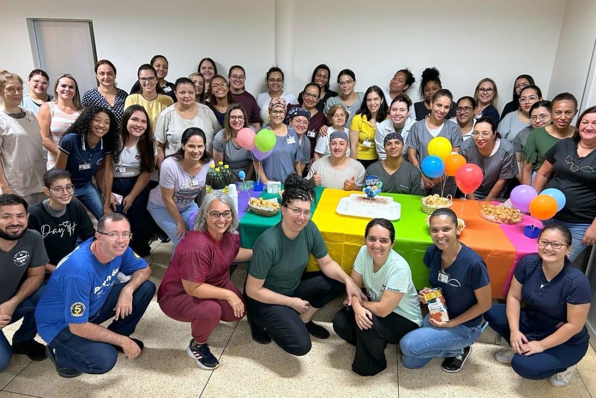Feliz aniversário, colaboradores!!!- Festa dupla para comemorar os aniversariantes. Através do Setor de Humanização, o hospital realizou na sexta-feira (21) confraternização em homenagem aos colaboradores que aniversariam em janeiro e fevereiro. A festa foi organizada por Regina Gomes, coordenadora de Humanização.