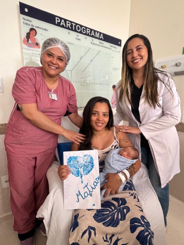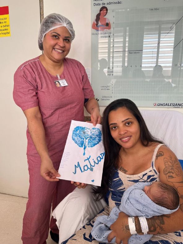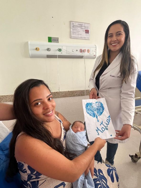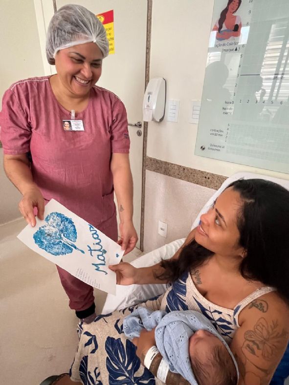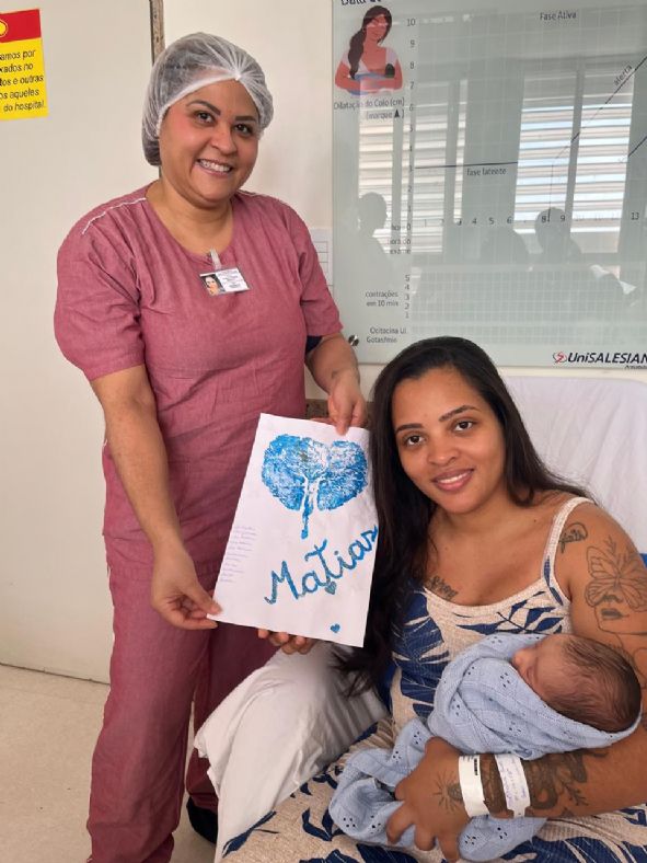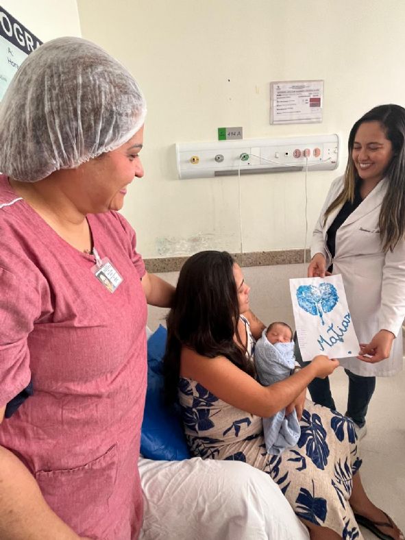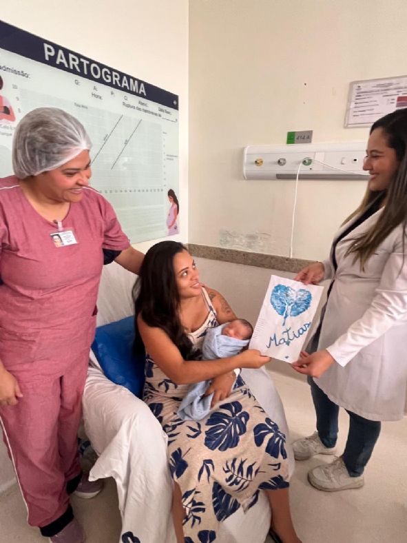 Ao receber a impressão da Árvore da Vida entregue pela médica residente Giovanna da Silva Parente e pela enfermeira obstetra Daniela Pereira Brandão, Nathalia falou dos planos que tem para a recordação. “Vou colocar em uma moldura e carregar para o resto da vida. Quando o Mathias crescer, vou mostrar de onde vinham o alimento e o ar que ele precisou quando estava na minha barriga.”