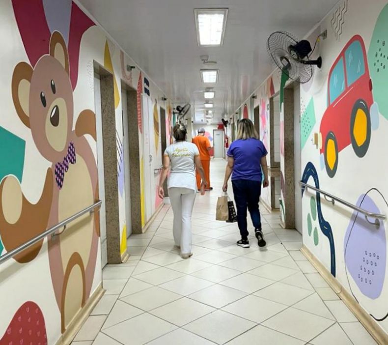 A Pediatria da Santa Casa de Araçatuba, ala com 19 leitos destinados à internação de pacientes do SUS com até 14 anos, está com novo visual e infraestrutura completa. Nos corredores e toda área externa, o branco das paredes foi substituído pela alegria e cores de pintura lúdica.