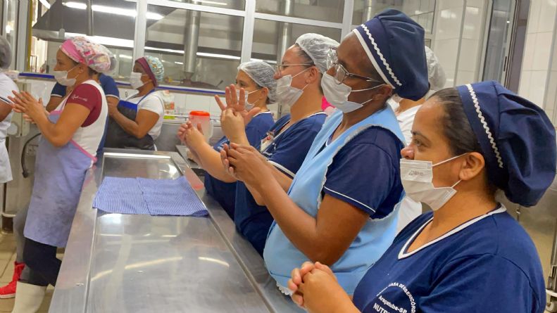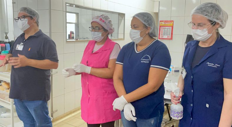 As 45 colaboradoras do setor foram atualizadas em relação à importância da higienização correta como preventivo a contaminações que podem desencadear processos de infecção hospitalar. O treinamento também incluiu prática pelas colaboradoras da Nutrição que higienizaram as mãos conforme o que foi ministrado na palestra.