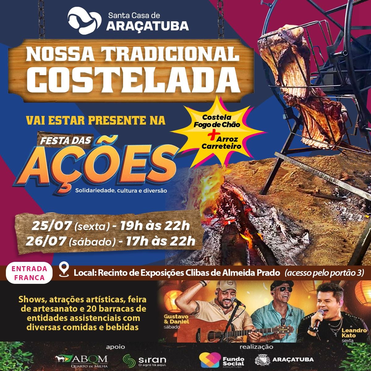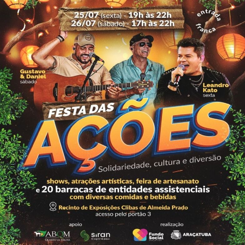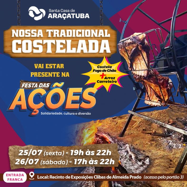 A Santa Casa de Araçatuba é uma das 20 instituições que vão participar da Festa das Ações, evento solidário, cultural e de entretenimento promovido pela administração do prefeito Lucas Zanatta através do Fundo Social de Solidariedade. O evento será realizado no Recinto de Exposições "Clibas de Almeida Prado” no próximo fim de semana (25 e 26 de julho) com entrada gratuita.