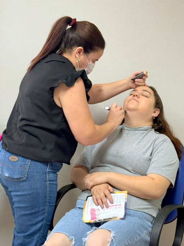Tudo foi pensado para suavizar a rotina de consultas, exames e quimioterapias. Munidas de pincéis, maquiagens, escovas e secadores, as profissionais de beleza conquistaram rapidamente a atenção das pacientes convidadas para passar por design de sobrancelha, maquiagem, um toque diferente nos cabelos ou arranjo com lenços. Durante a sessão de transformação, a vice-presidente do Instituto AmarElo, Cíntia Garcia, que enfrentou um câncer de mama, compartilhava sua experiência com as pacientes.